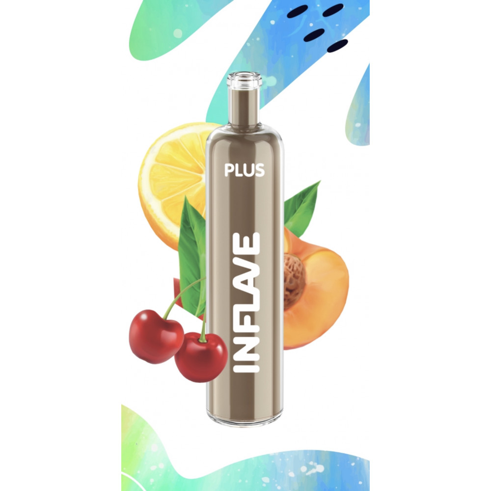 Электронная сигарета Inflave Plus 2200 затяжек Вишня Персик Лимон, яркое сочетание вкуса вишни, сладкого персика и кислинки лимона.