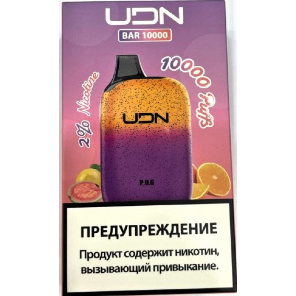 Электронная сигарета UDN BAR 10000 P.O.G. (УДН Бар Маракуйя Апельсин Гуава) на 10000 затяжек